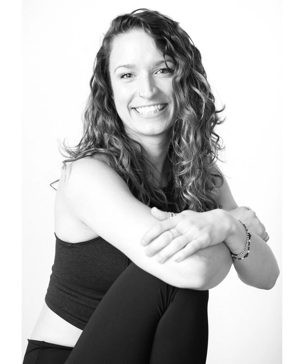 "Movement has been my outlet for as long as I can remember. As a child I was inverted more often than right-side-up. New shapes became an obsession, from gymnastics and dance to volleyball and soccer. I began my Yoga journey with an extended Ashram stay where I learned to find my mat as 'home', a sense of calm and security. My Pilates study came about when childhood injuries began to re-surface. Then and now, each present[ed] a challenge to repair and continue both mentally and physically. As an adult I continue to fine tune that process with Yoga and Pilates. I feel so lucky to connect with my communities over a shared love for the human body and mind. Being on my mat daily and helping others get to theirs has been a beautiful and complex healing relationship."